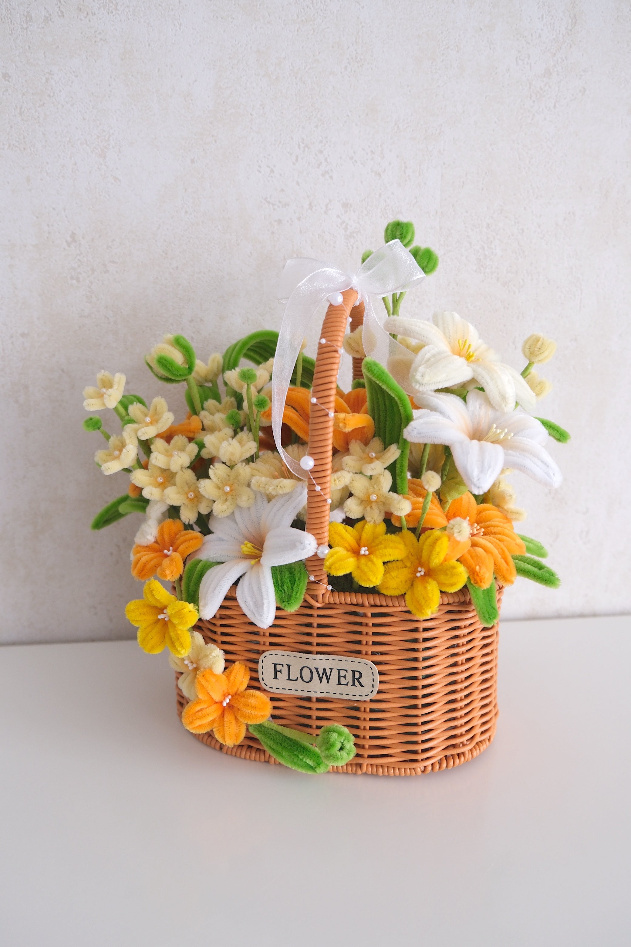 Onze bloemen zijn gemaakt van chenilledraad, zo blijven ze voor eeuwig mooi en intact.